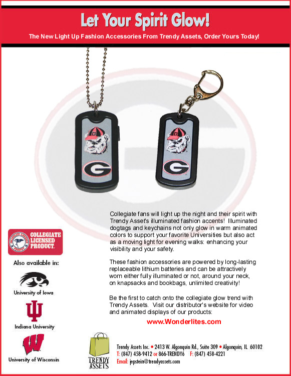 Cat# WLUGAKC01: UGA Keychains - Regular Retail $9.95 Aug-Sept Special $8.95 Cat# WLUGANDT01: UGA Dog Tag - Regular Retail $9.95 Aug-Sept Special $8.95